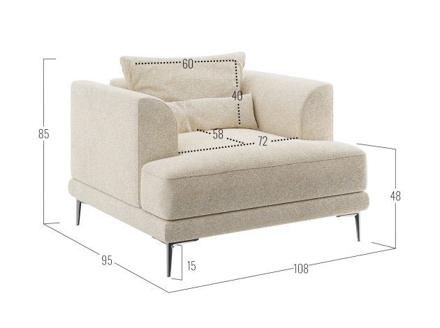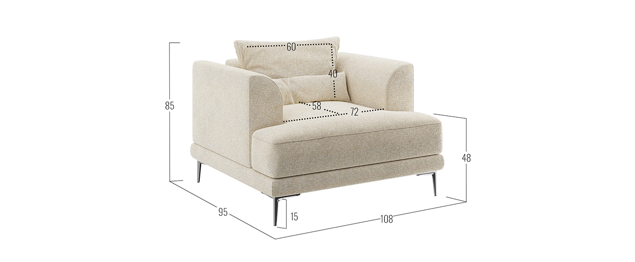 - Посадочное место без подушек (ШхГ): 72 х 77 см.