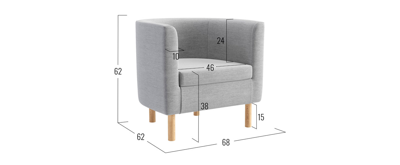 Компактное и стильное кресло Эпл Мини понравится ценителям гармонии в интерьере. Мягкие спинка и подлокотники образуют единую линию, подчеркивая лаконичный силуэт модели. Конусовидные ножки из массива придают креслу визуальную легкость. Опоры достаточно высокие, поэтому под ними свободно проезжает робот-пылесос. Комфортные глубина и ширина сиденья располагают к расслабленному отдыху.
