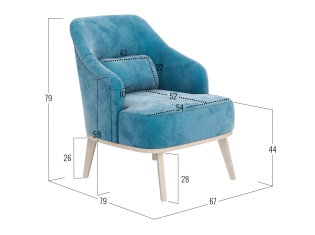 - Посадочное место без подушек (ШхГ): 54 х 65 см.