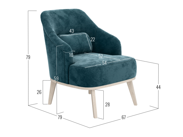- Посадочное место без подушек (ШхГ): 54 х 65 см.