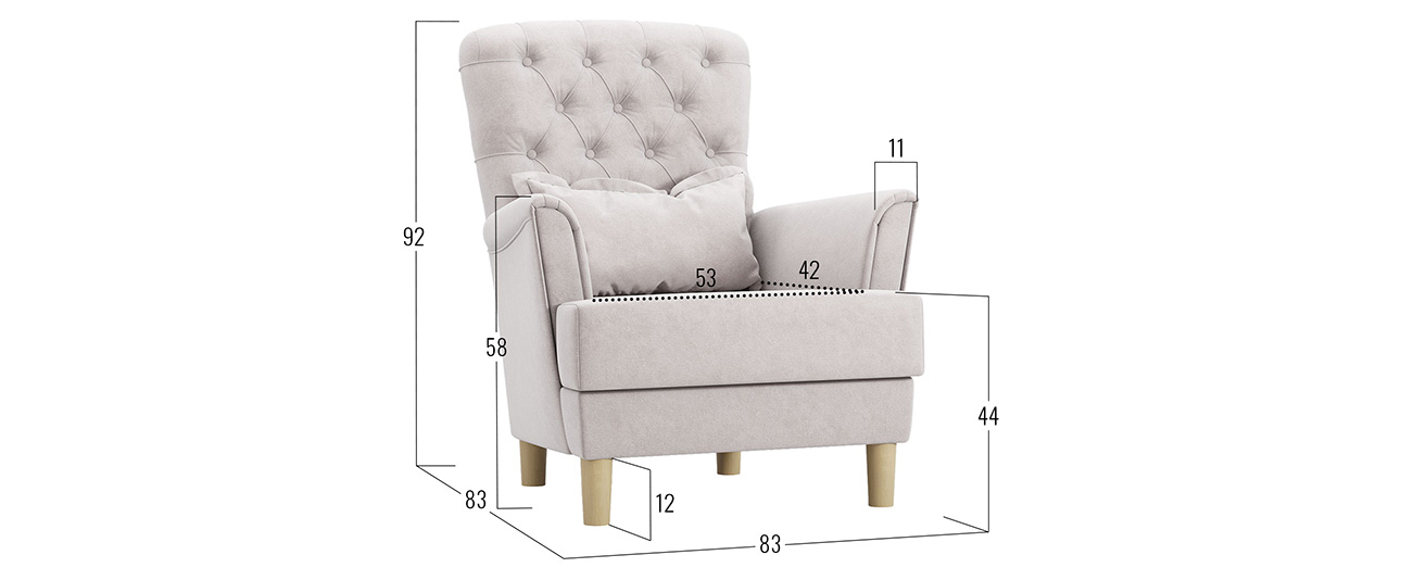 Кресло Мэрион Серый, велюр Дерево (массив)