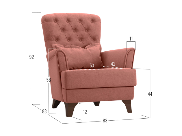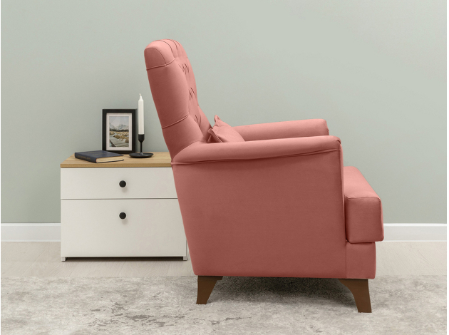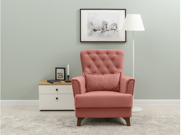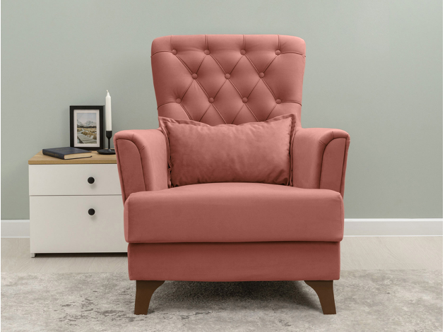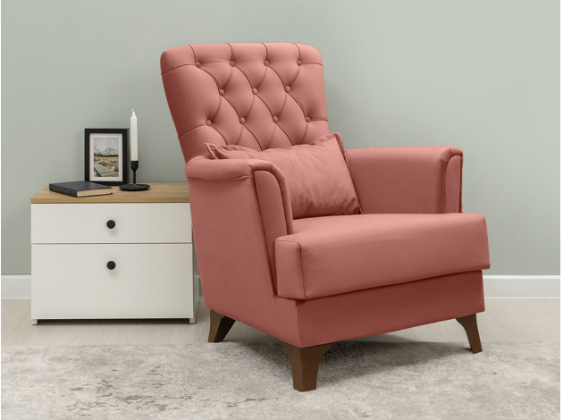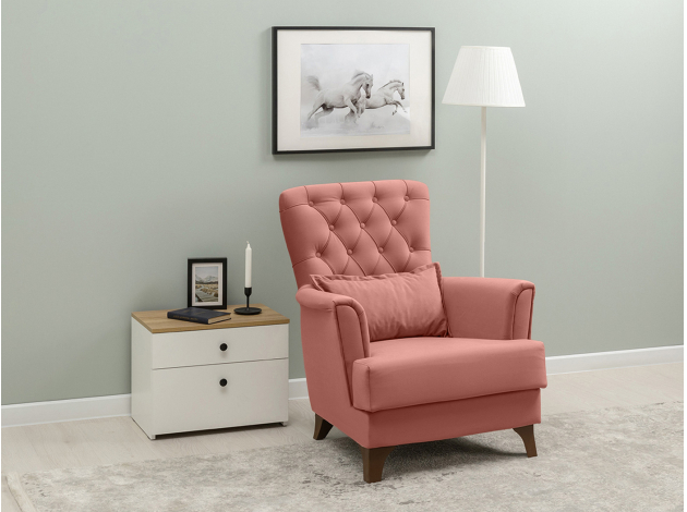 Очаровательное кресло Мэрион в классическом исполнении гармонично дополнит интерьеры в стилях прованс и классика. Изящная спинка декорирована каретной стяжкой с большими пуговицами, а мягкие подлокотники имеют утонченную форму. Для наибольшего удобства в комплект входит мягкая приспинная подушка.