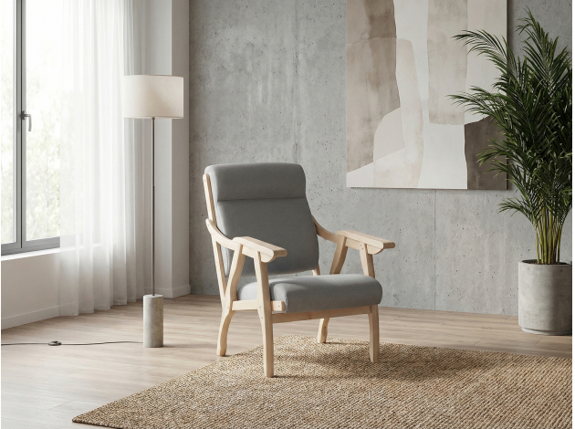 Кресло Саммер Серый, рогожка Натуральный, лак