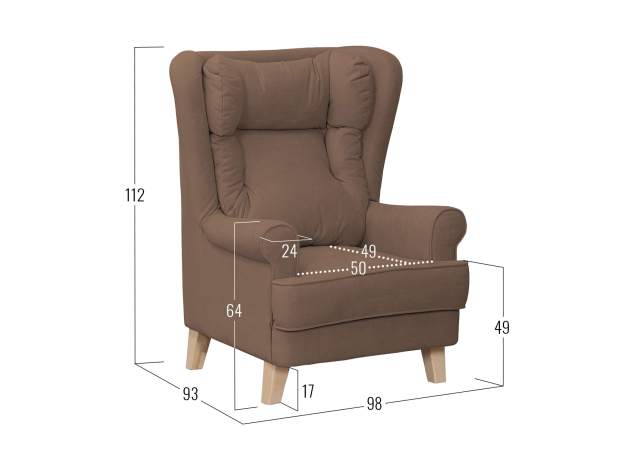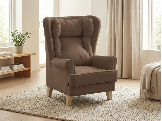 Кресло Лацио Коричневый, велюр Натуральный, лак