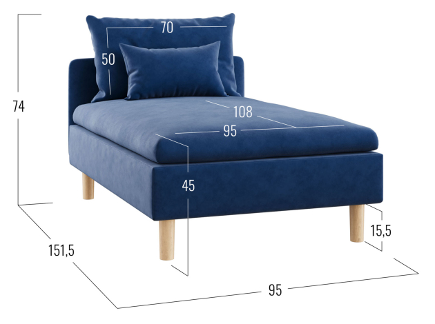 - Высота ножек: 15,5 см.