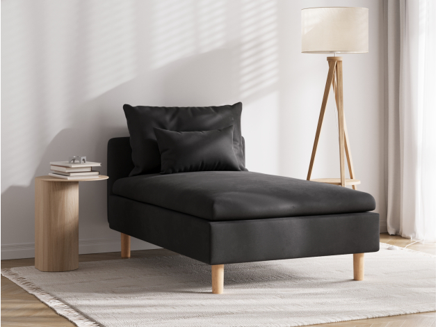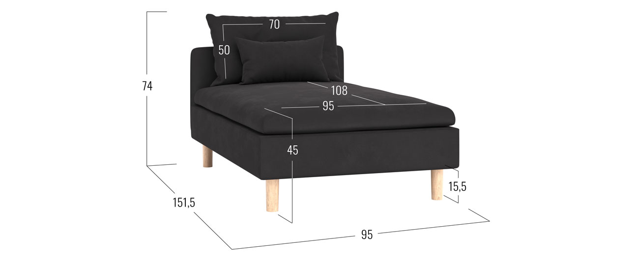 Шезлонг Калисто — визуально легкая и лаконичная модель в актуальном дизайне. Благодаря глубокой посадке и мягкой приспинной подушке на нём удобно отдыхать, а отсутствие подлокотников экономит пространство в комнате. Высокие деревянные ножки добавляют уютный акцент и облегчают уборку. Шезлонг можно комбинировать с другими элементами коллекции.