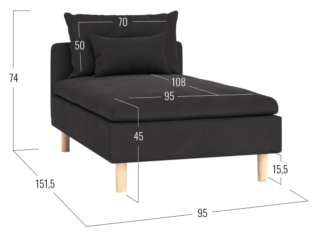 - Высота ножек: 15,5 см.