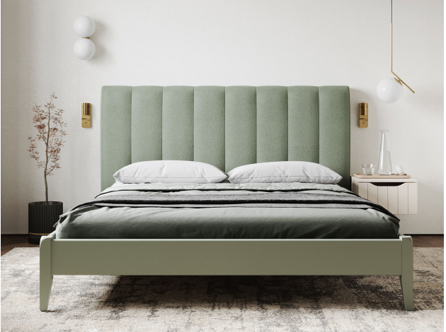 Двуспальная кровать Арма Зеленый самшит, шенилл / Зеленый самшит, массив сосны 180х200 см