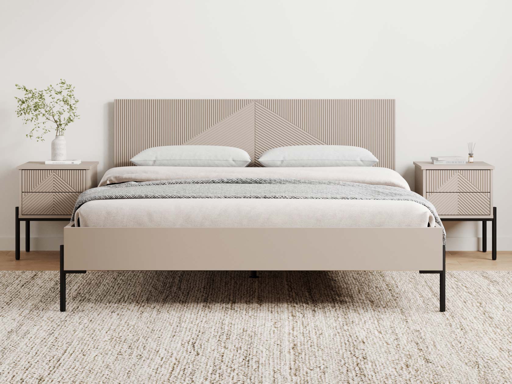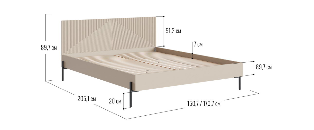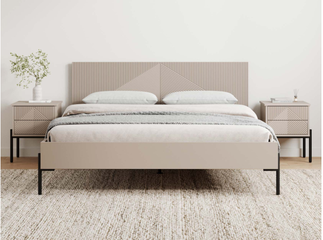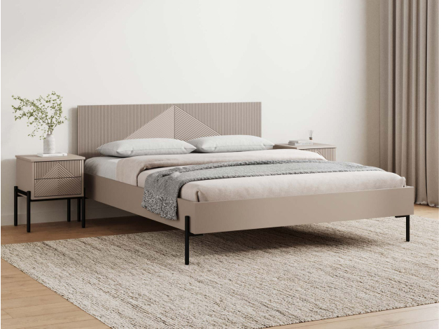Двуспальная кровать Азуми стильная, изящная и практичная. Динамичный узор на спинке служит акцентом интерьера. Благодаря тонким высоким опорам кровать смотрится легко и невесомо даже в небольшой комнате. Основание с ламелями создает оптимальную основу для матраса: равномерно распределяет нагрузку и обеспечивает свободную циркуляцию воздуха.