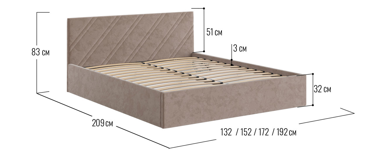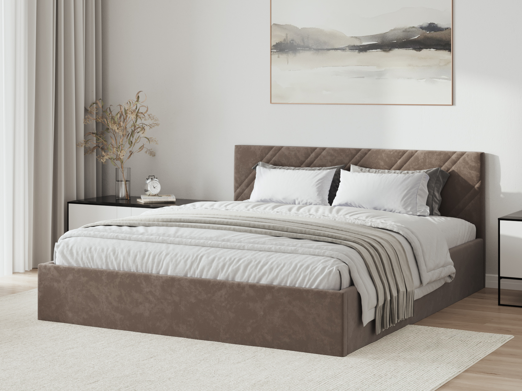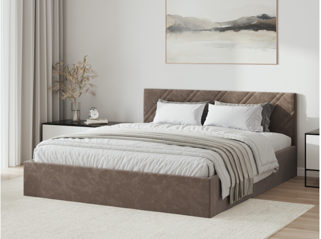 Двуспальная кровать Бета Какао, велюр 140х200 см Анатомическое основание с подъемным механизмом