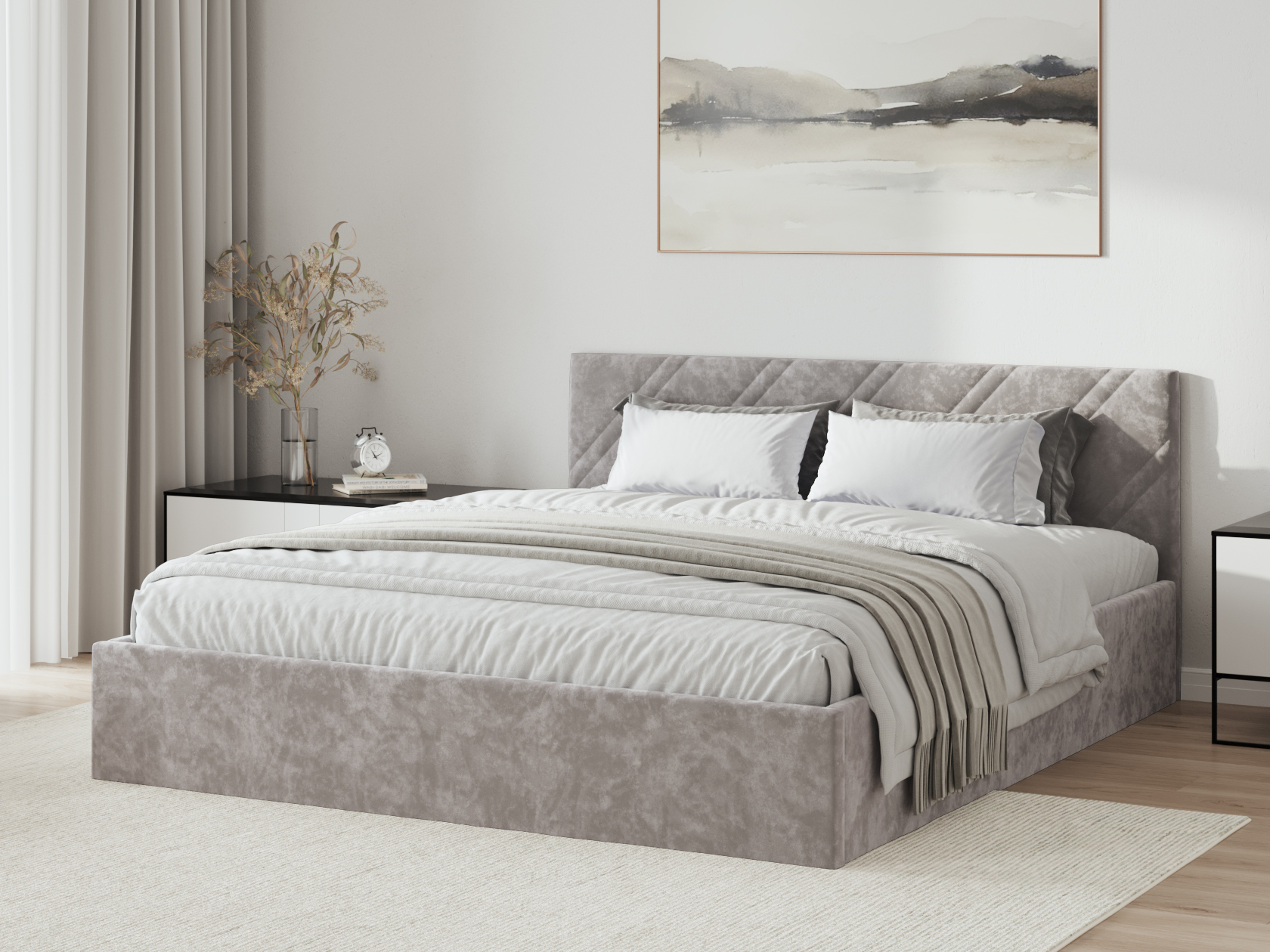 Двуспальная кровать Бета Серый, микровелюр 180х200 см С основанием настил