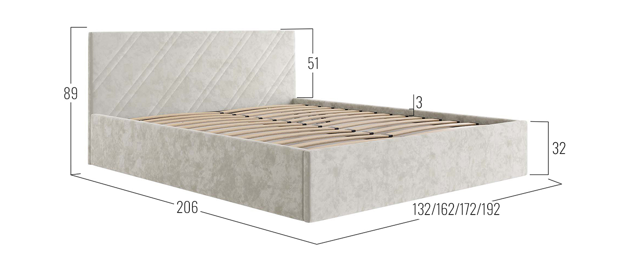 Двуспальная кровать Бета Молочный, микровелюр 160х200 см Анатомическое основание с подъемным механизмом
