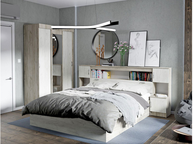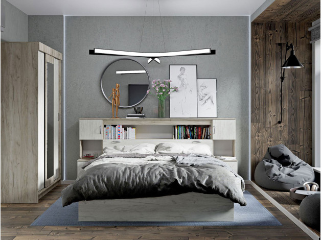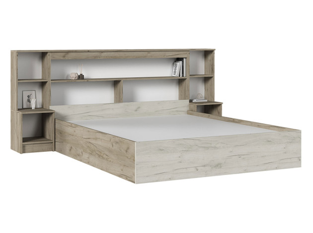 Двуспальная кровать Бриз — практичное решение для небольшой квартиры или студии. Большое количество полок создает дополнительное место для хранения самых разных вещей: от книг и декора до пледов и аксессуаров. Кровать оформлена в древесном оттенке, который создает уютную атмосферу спальни.