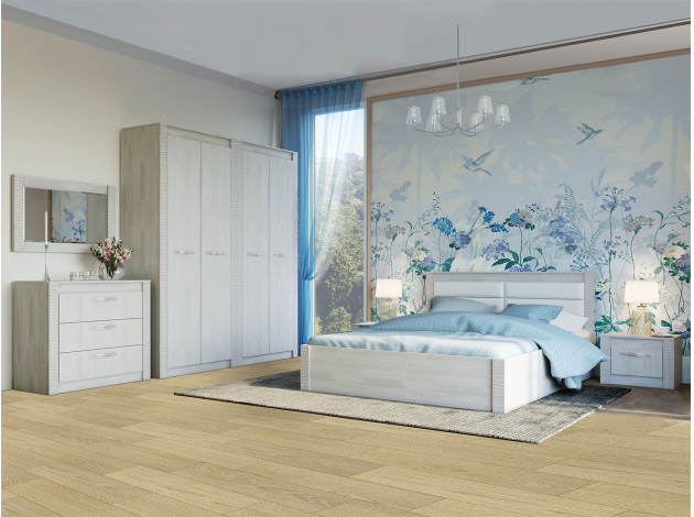 Кровать Далия Белый ясень / Белый, экокожа 160х200 см С реечным основанием