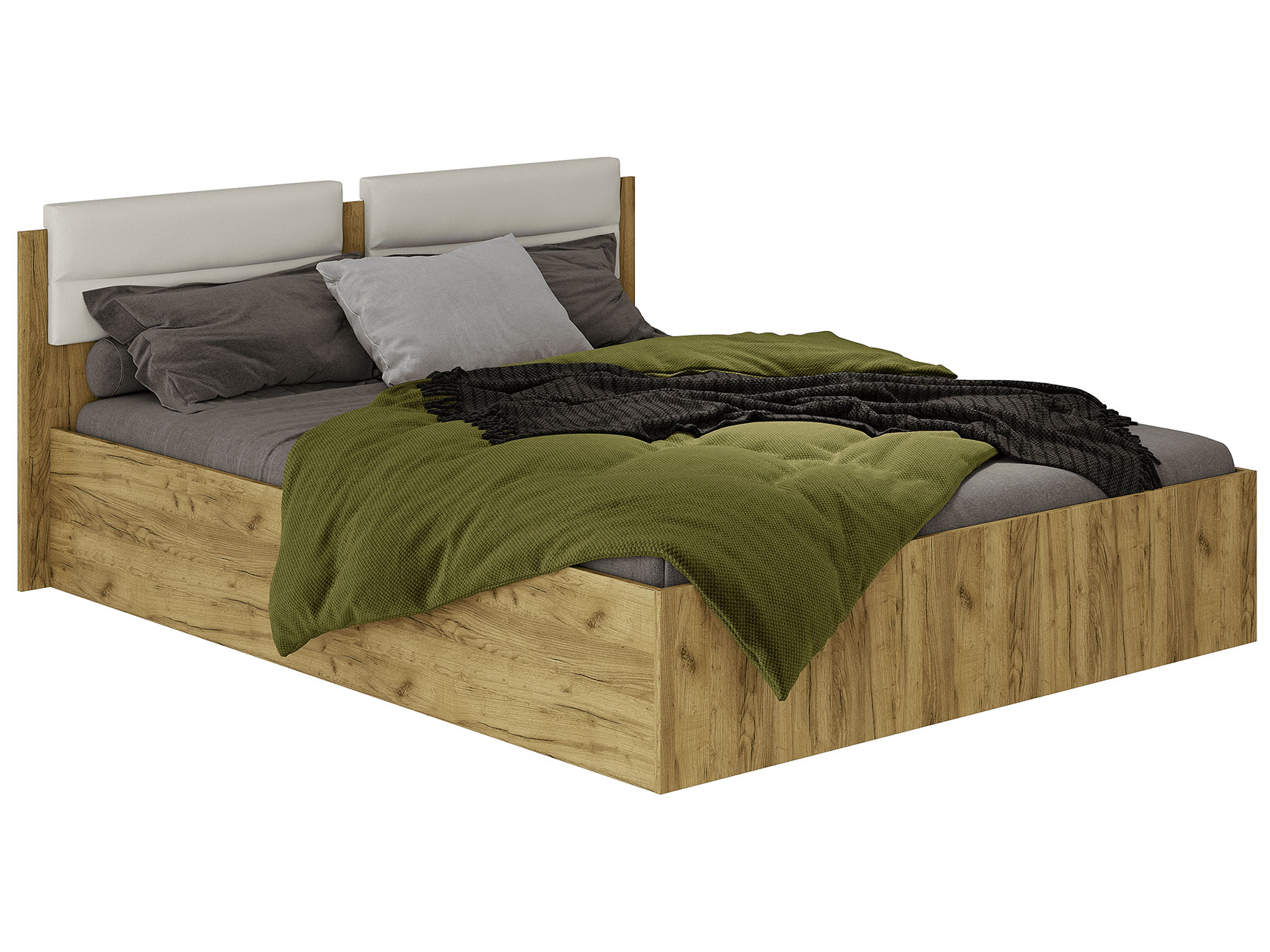Кровать Грени Дуб Крафт / Белый / Белый, экокожа С основанием настил