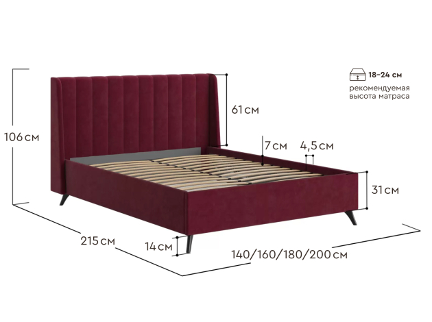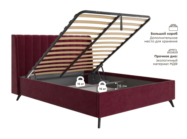 Кровать с подъемным механизмом Холли ПМ Красный, велюр 180х200 см