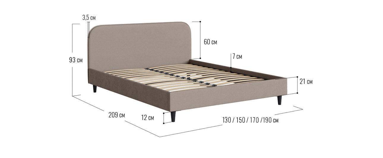 Двуспальная кровать Инес Какао, велюр 120х200 см
