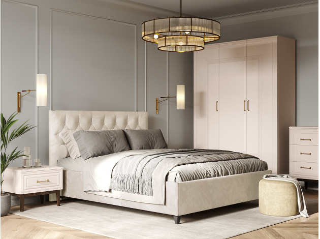Кровать с подъемным механизмом Алье ПМ Кремовый, велюр 180х200 см