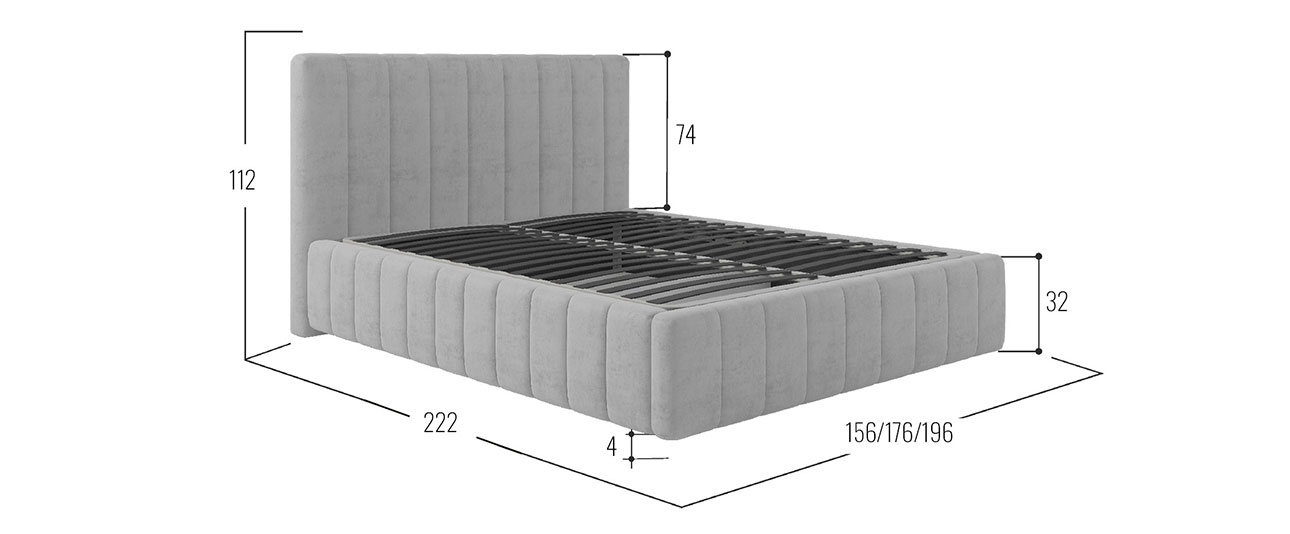 Кровать с подъемным механизмом Аметис ПМ подчеркнет индивидуальность интерьера и станет уютным местом для отдыха. Мягкая обивка с вертикальной строчкой в сочетании с высоким изголовьем поможет создать комфортную атмосферу комнаты. Кровать комплектуется основанием с ламелями, которое равномерно распределяет нагрузку на матрас и усиливает его анатомические свойства. Просторный бельевой ящик позволит хранить различные принадлежности для сна, а также текстиль и пледы.