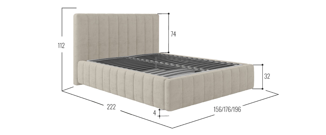 Кровать с подъемным механизмом Аметис ПМ Кремовый, велюр 160х200 см