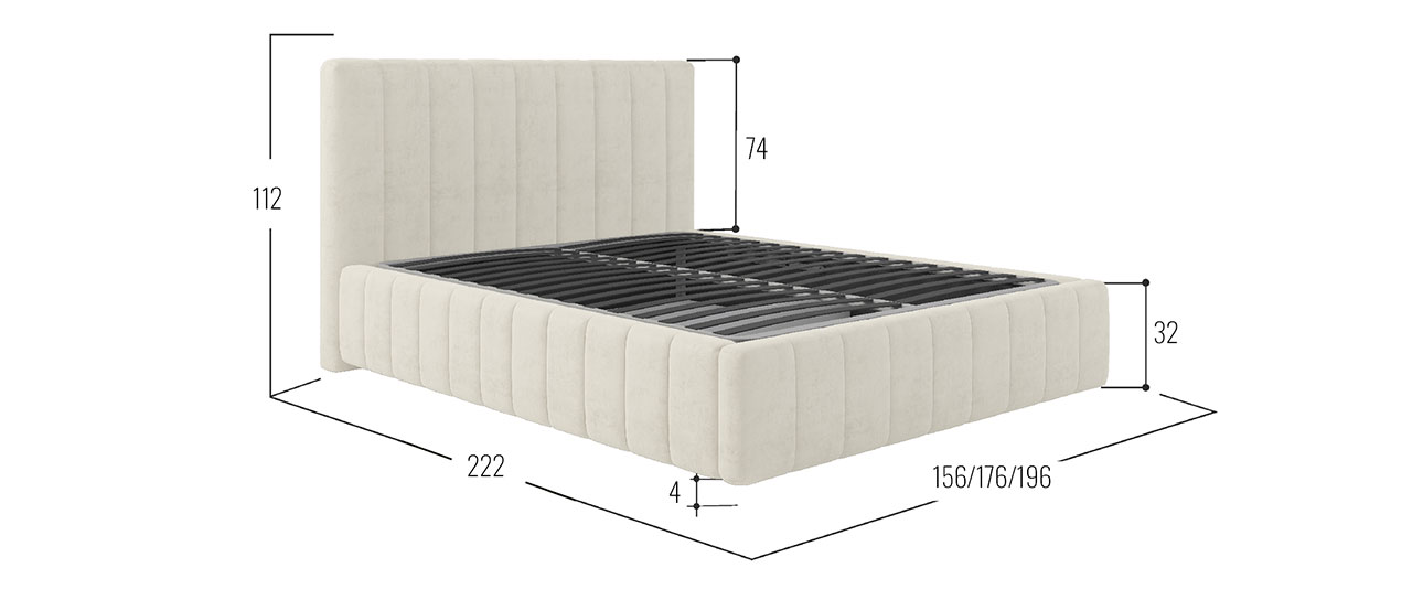Кровать с подъемным механизмом Аметис ПМ Молочный, велюр 180х200 см