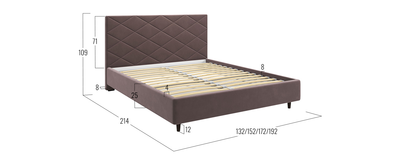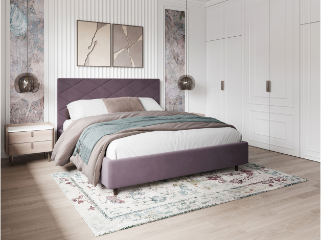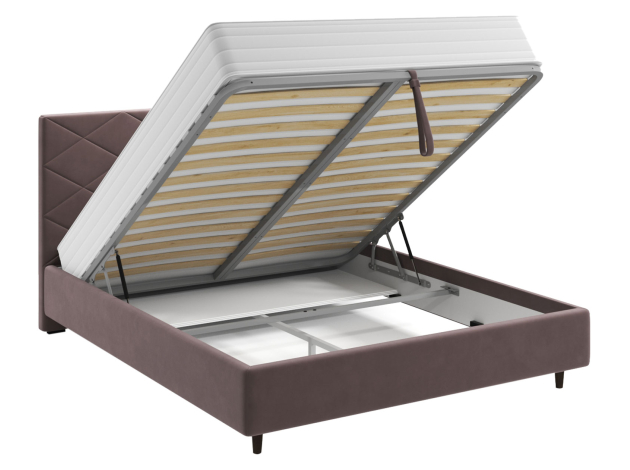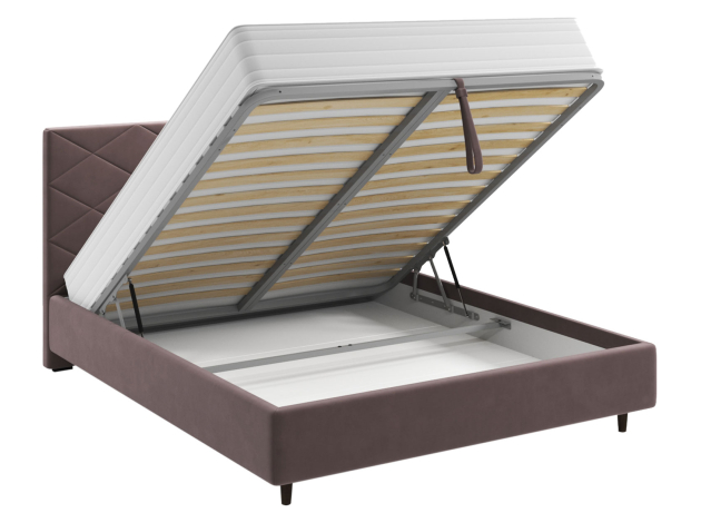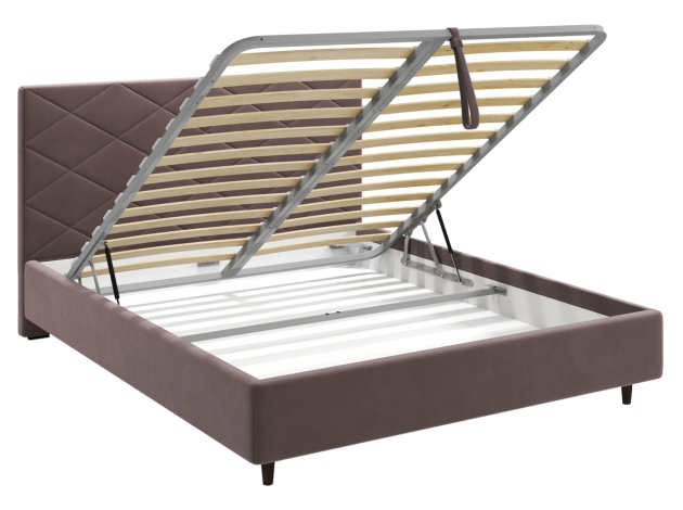 Кровать с подъемным механизмом Делона ПМ обеспечит качественный отдых и комфортный сон. Модель с мягким изголовьем, украшенным ромбовидной стяжкой, станет привлекательным акцентом современной спальни. Подъемный механизм открывает доступ ко вместительному бельевому коробу, а ламельное основание служит оптимальной опорой для матраса. Небольшие ножки делают кровать визуально легкой и гармоничной.