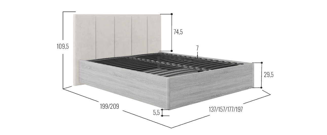 Кровать с подъемным механизмом Джулия ПМ Молочный, велюр / Ясень Анкор светлый 120х200 см