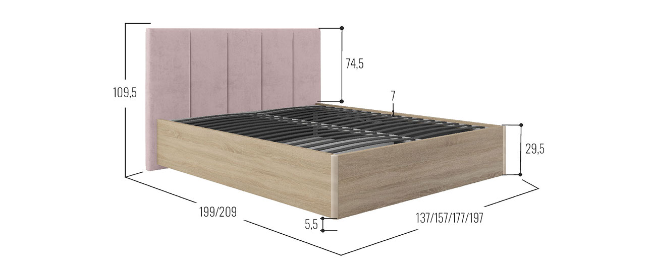 Кровать с подъемным механизмом Джулия ПМ Розовый, велюр / Дуб Сонома 160х200 см