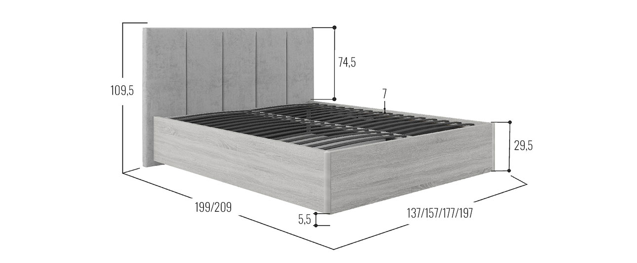 Кровать с подъемным механизмом Джулия ПМ Серый, велюр / Ясень Анкор светлый 140х200 см
