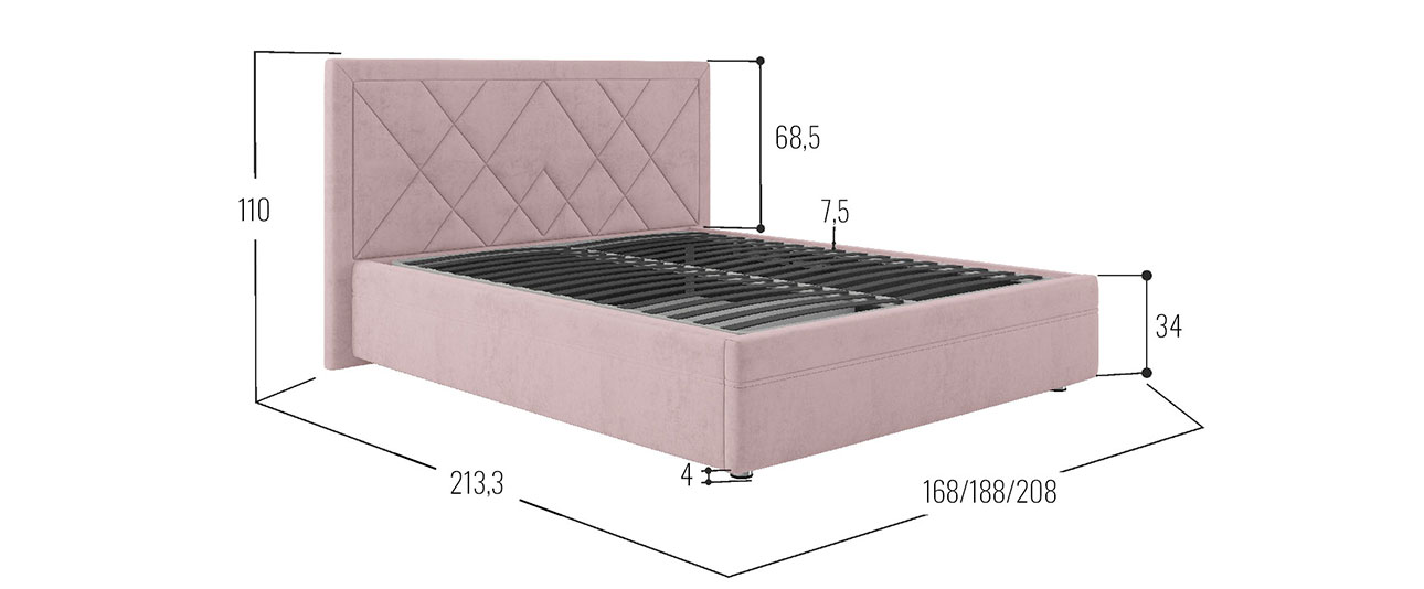 Кровать с подъемным механизмом Мелинда ПМ Розовый, велюр 160х200 см