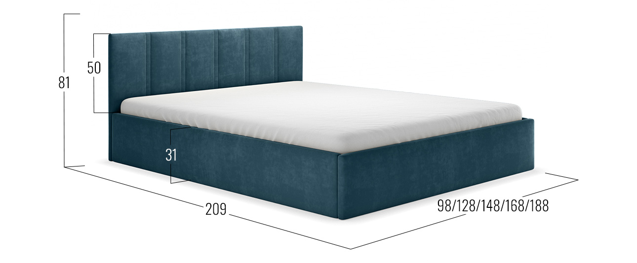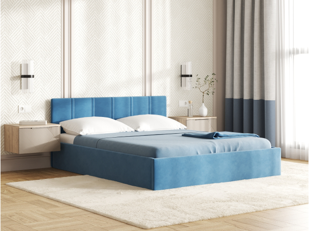 Кровать с подъемным механизмом Корсо ПМ Синий, велюр 140х200 см