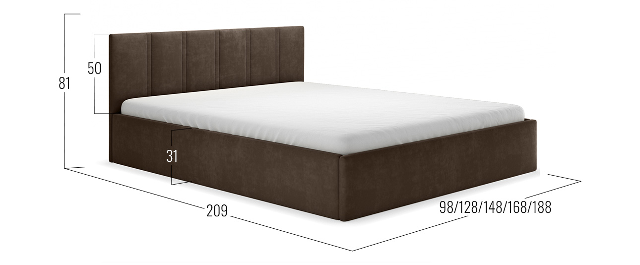 Кровать с подъемным механизмом Корсо ПМ Коричневый, велюр 120х200 см