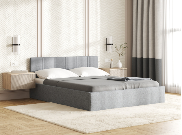 Кровать с подъемным механизмом Корсо ПМ Серая, рогожка 140х200 см