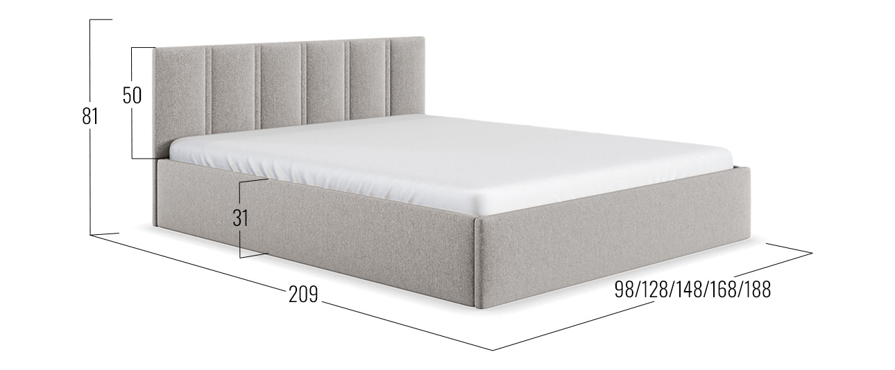 Кровать с подъемным механизмом Корсо ПМ Светло-серая, рогожка 90х200 см