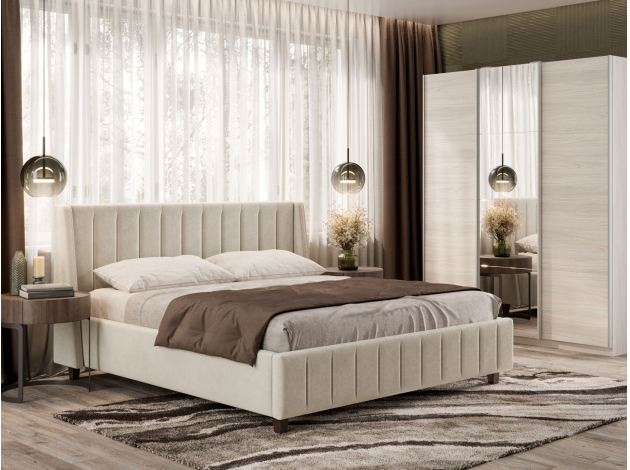 Кровать Одри ПМ Молочный, велюр 160х200 см