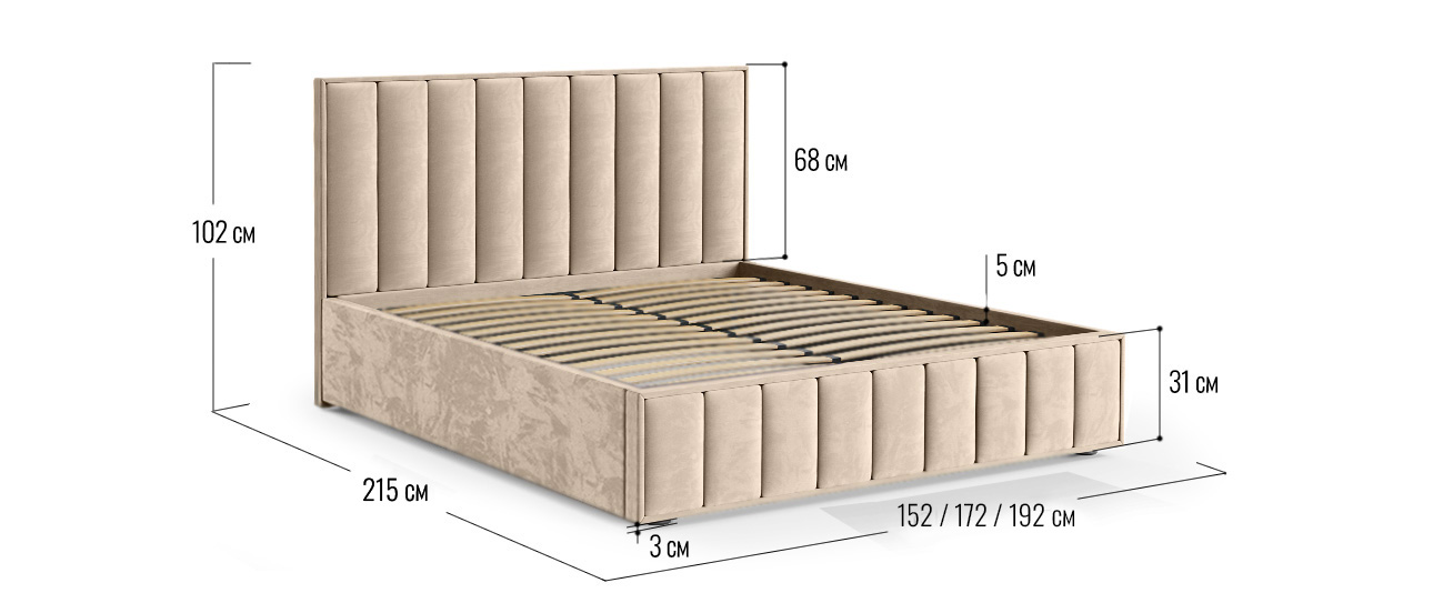 Кровать с подъемным механизмом Шерон ПМ Кремовый, велюр 160х200 см