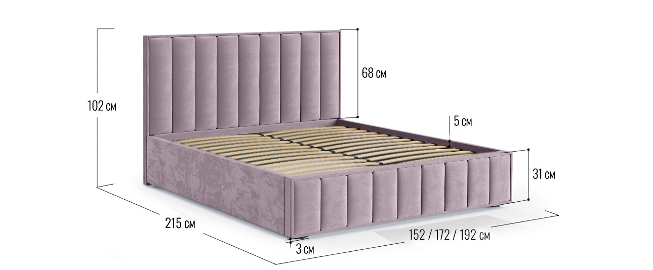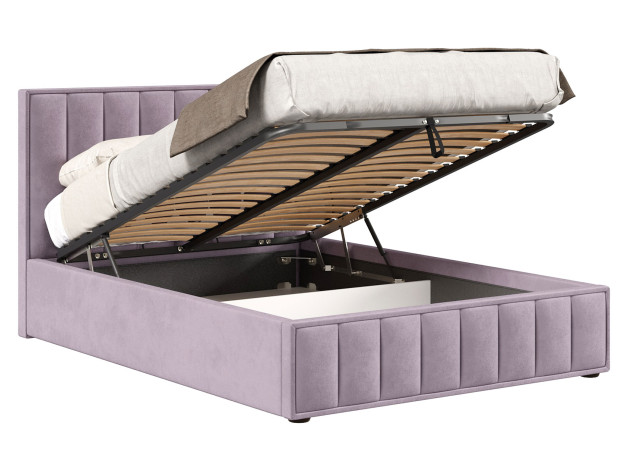 В дизайне кровати с подъемным механизмом Шерон ПМ удачно сочетаются эстетика сдержанной роскоши, индивидуальность и практичность. Мягкая обивка создает атмосферу уюта, а основание с ламелями заботится о комфортном сне. Изюминка модели — повторяющийся декор, который используется в оформлении спинки и изножья. Вертикальные строчки подчеркивают симметрию и правильные линии кровати.