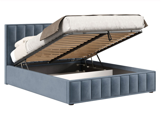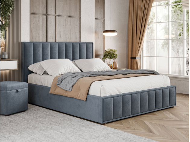В дизайне кровати с подъемным механизмом Шерон ПМ удачно сочетаются эстетика сдержанной роскоши, индивидуальность и практичность. Мягкая обивка создает атмосферу уюта, а основание с ламелями заботится о комфортном сне. Изюминка модели — повторяющийся декор, который используется в оформлении спинки и изножья. Вертикальные строчки подчеркивают симметрию и правильные линии кровати.