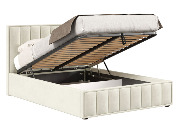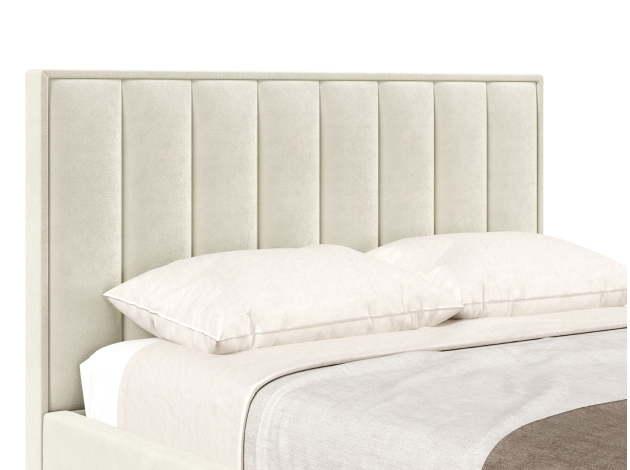 В дизайне кровати с подъемным механизмом Шерон ПМ удачно сочетаются эстетика сдержанной роскоши, индивидуальность и практичность. Мягкая обивка создает атмосферу уюта, а основание с ламелями заботится о комфортном сне. Изюминка модели — повторяющийся декор, который используется в оформлении спинки и изножья. Вертикальные строчки подчеркивают симметрию и правильные линии кровати.