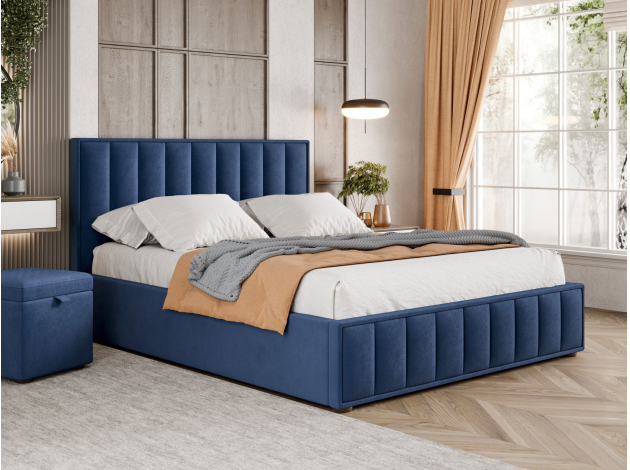 Кровать с подъемным механизмом Шерон ПМ Синий, велюр 120х200 см