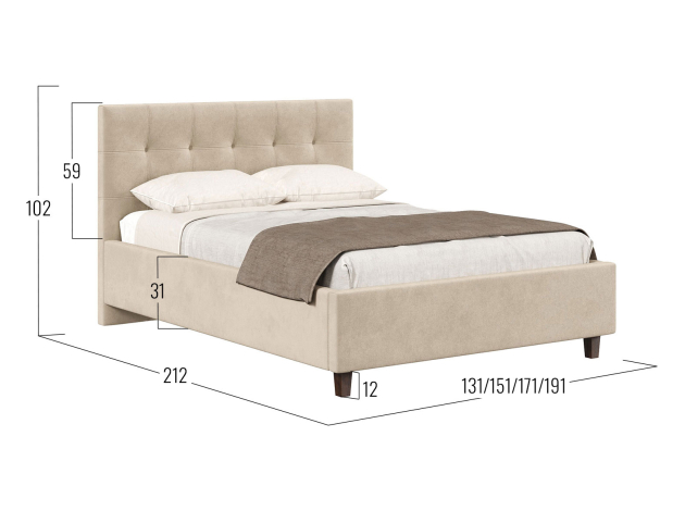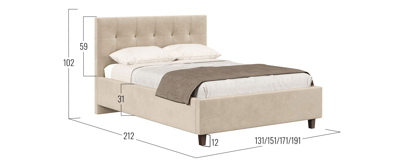 Кровать с подъемным механизмом Тарра ПМ Кремовый, велюр 120х200 см