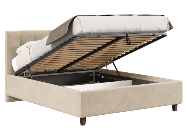 Основательная и практичная кровать с подъемным механизмом Тарра ПМ порадует актуальной эстетикой и комфортом. Мягкая обивка дарит приятные прикосновения, а также наполняет спальню теплотой и уютом. Прочные ножки делают конструкцию визуально легче и служат лаконичными акцентами. Под основанием предусмотрены вместительные ящики, где удобно хранить постельные принадлежности и сезонные вещи.
