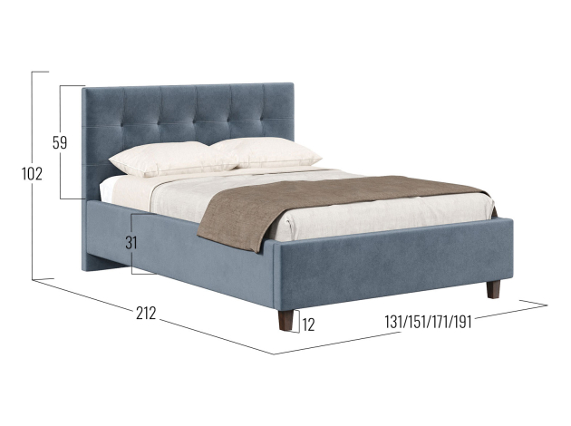 Кровать с подъемным механизмом Тарра ПМ Серый, велюр 140х200 см