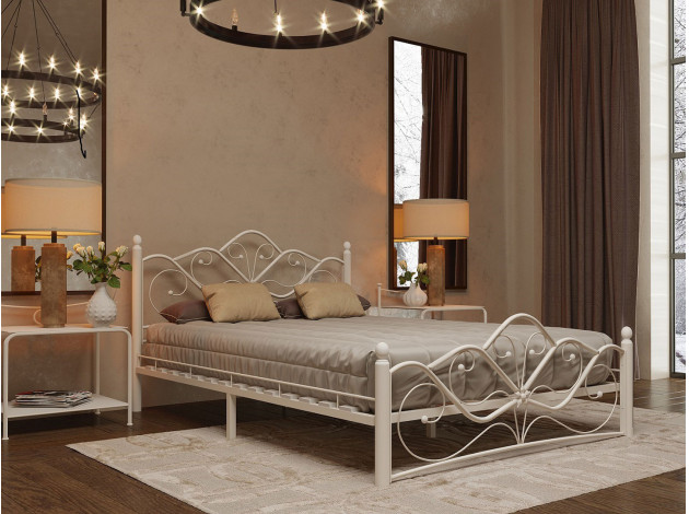 Двуспальная кровать Веста — визуально легкая и воздушная модель с прочным металлическим каркасом. Изящный декор спинки и изножья вносит в интерьер особую утонченность. Кровать прекрасно смотрится как в просторной, так и небольшой спальне. Основание с ламелями выдерживает большие нагрузки, равномерно распределяет вес и обеспечивает проветривание матраса.