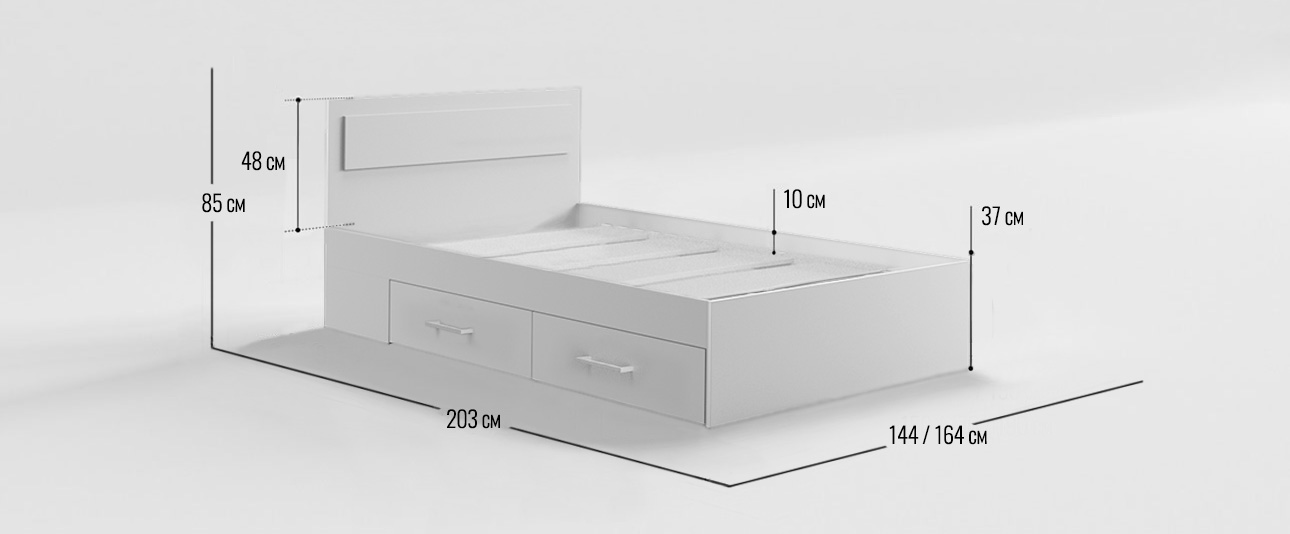 - Высота ниши под матрас: 10 см.
