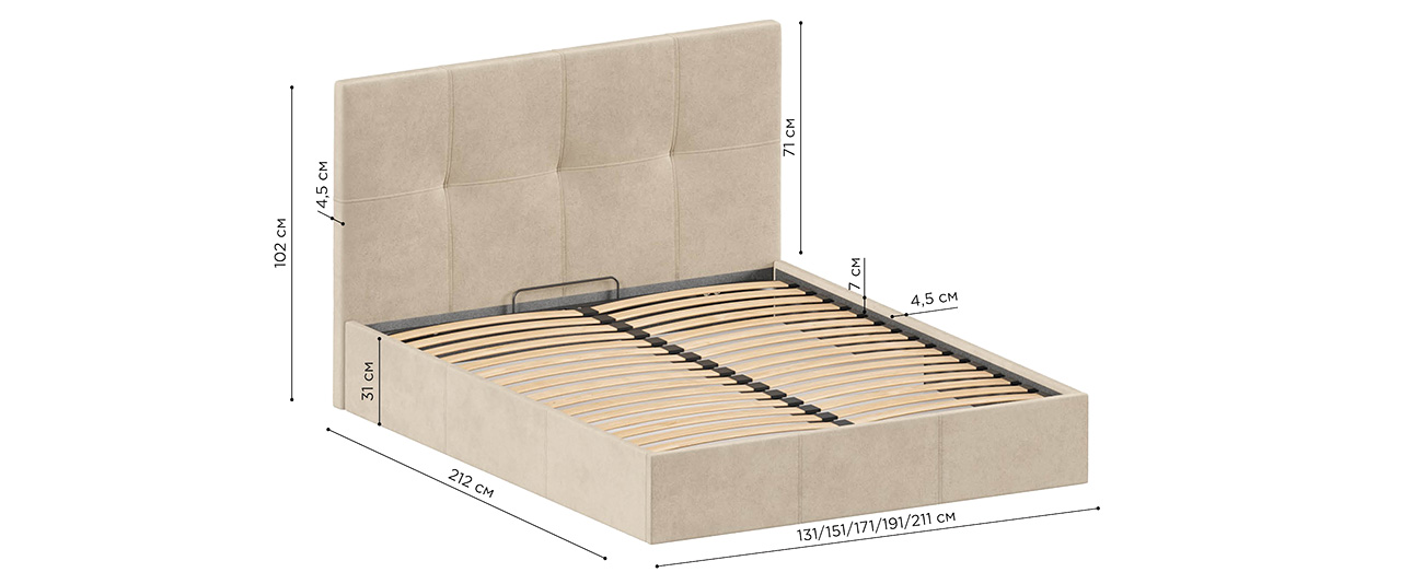 Кровать с подъемным механизмом Мари ПМ Бежевый, велюр 160х200 см