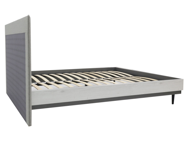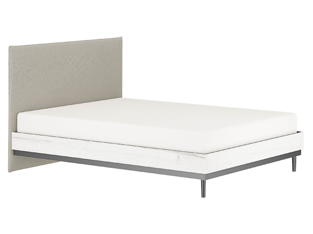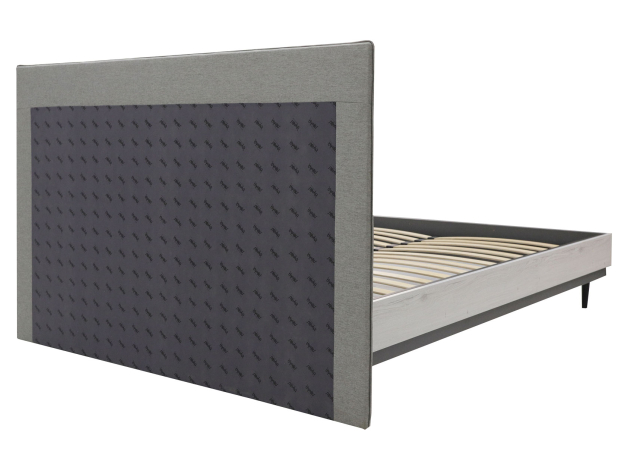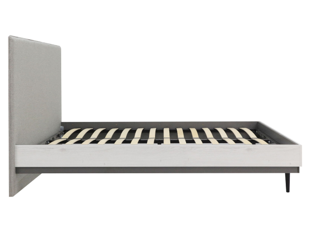 Двуспальная кровать Нильс Дуб Эльза, ЛДСП / Темно-серый лофт, ЛДСП / Силвер, рогожка 140х200 см