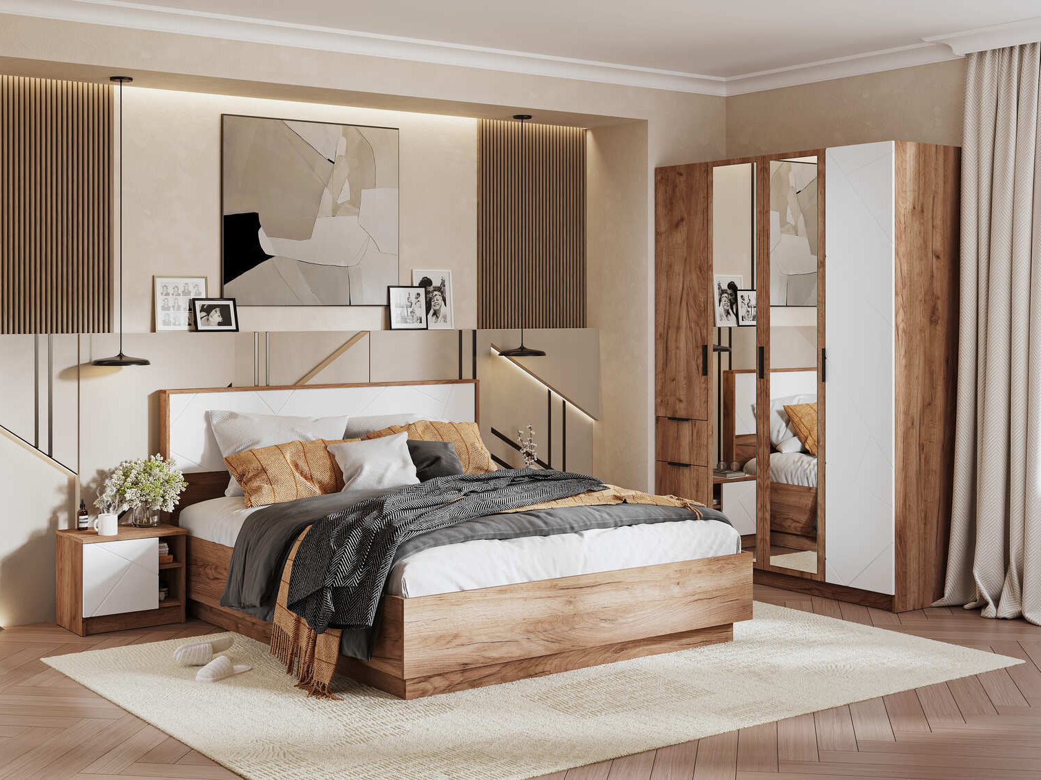 Двуспальная кровать Орегон Дуб Крафт табачный, ЛДСП / Белый супермат, МДФ 140х200 см