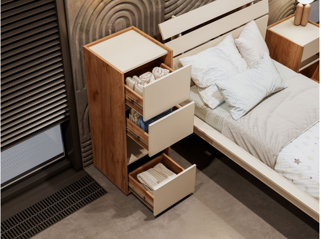 Кровать Орма украсит интерьер и станет центральным акцентом композиции. Изюминка модели — в дизайне изголовья в виде горизонтальных планок, которые создают невесомую дугу. Такое решение обеспечивает жесткость конструкции, при этом не утяжеляя ее. Основание можно дополнить выкатными ящиками, где удобно хранить постельное белье и другие принадлежности.