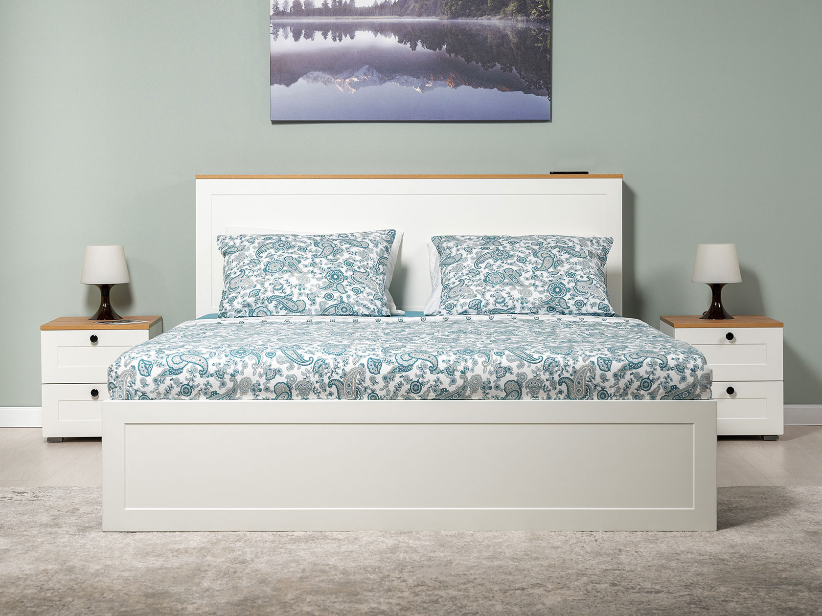 Двуспальная кровать Остин — идеальный баланс эстетики и функциональности. Высокое изголовье дополнено небольшими нишами, где удобно хранить разные мелочи, а приподнятое основание облегчает уборку пола. Элегантный и сдержанный дизайн удачно сочетается с разными интерьерными стилями: от неоклассики до сканди.